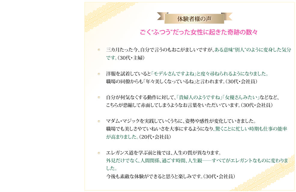 エレガンス道の心得…3 「女性らしさ」を大切にしています